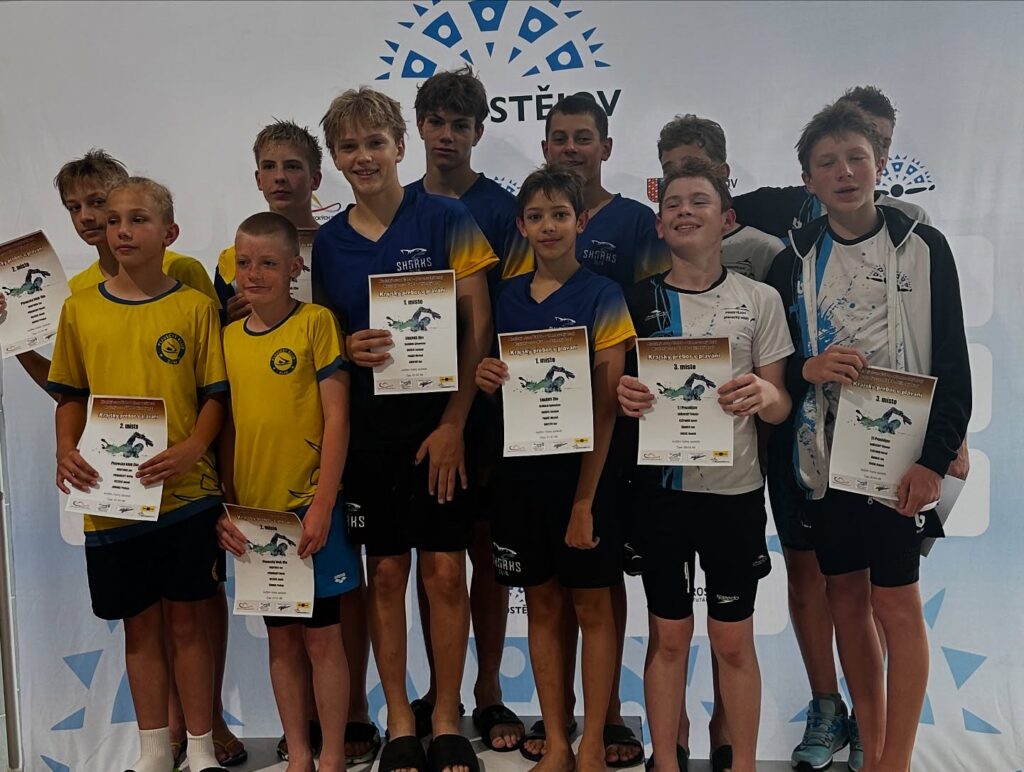 Také jsme se skvěle předvedli ve všech štafetách, kde jsme posbírali šest medailí 🥇🥇🥇🥇🥈🥉, díky tomu se na pódium podívali další Žraloci, a to Jan SMUTNÝ a Michal PAGÁČ 🤩
